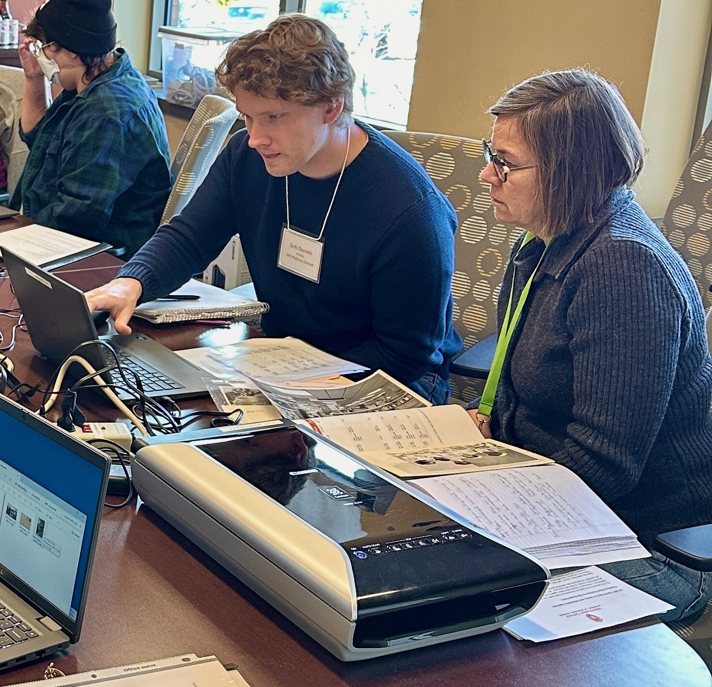 Three special guests joined us for lunch: Jill Kambs, Digital Collections Production Manager at UW–Madison Libraries; Nyama Reed, Director of the Whitefish Bay Public Library; and Ben Miller from the Wisconsin Department of Public Instruction. Ben Miller shared reflections on the importance of preserving history in this moment, leaving the group energized and inspired.
